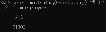 22. 사내의 최대 급여 및 최소 급여의 차이를 출력하시오.