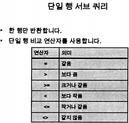 - 단일 행 서브쿼리는 결국 내가 필요한 값을 위함.