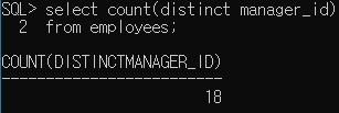근데, manager_id 중에서 또 중복되는게 있기 때문에 distinct 구문을 통해 중복되는걸 걸러주고 카운팅할 것.