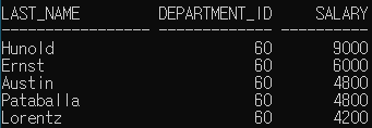 위는 " IT라는 부서에 근무하는 사원의 이름과 부서번호, 급여를 출력 "하는 구문이다. 원레 같으면 JOIN으로 해결을 해야 하지만 서브쿼리를 통해 해결을 한 모습이다.