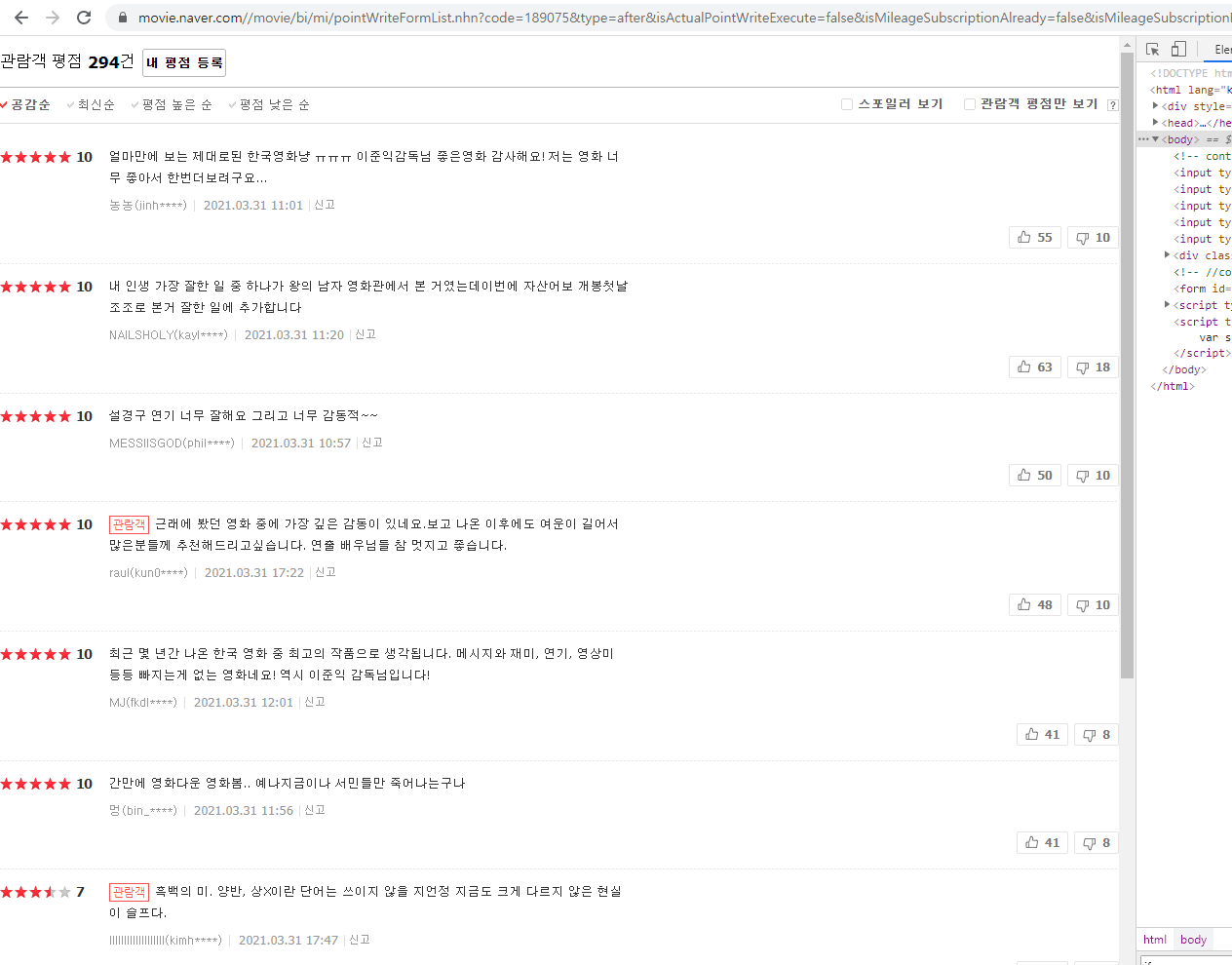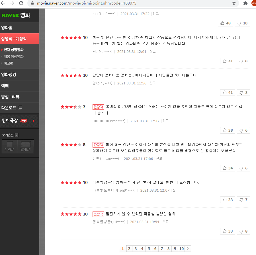 mov_df.to_csv("naver_movie.csv", encoding = "utf-8-sig")