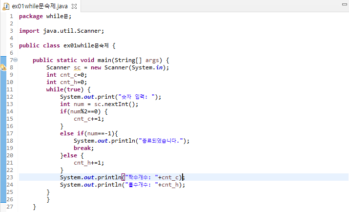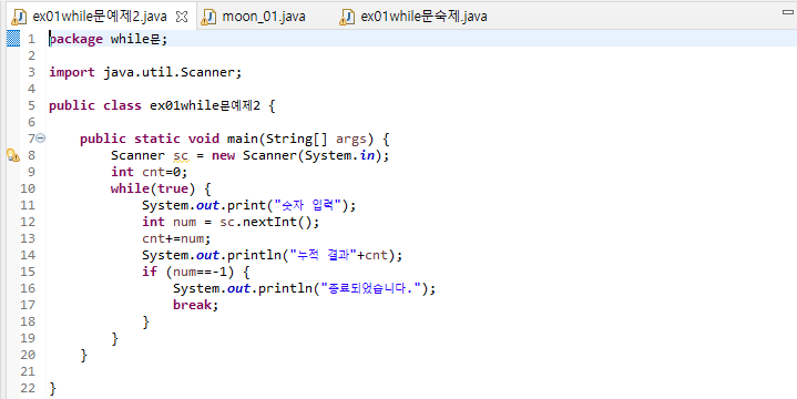 Java에서의 while문은 사용법은 파이썬과 큰 차이는 없다.