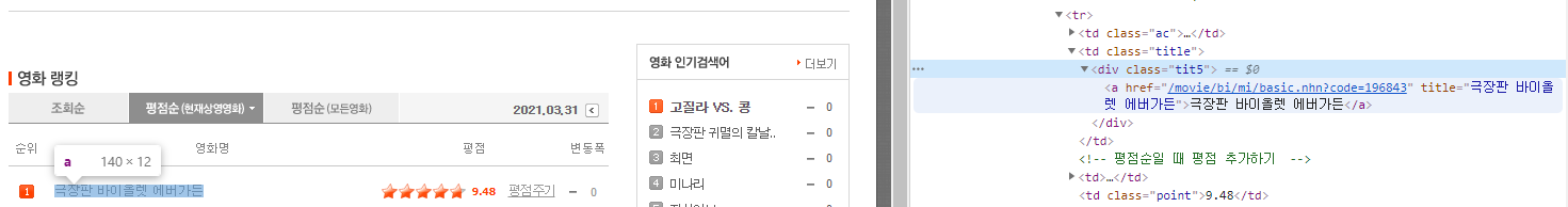 mo_req = req.get("https://movie.naver.com/movie/sdb/rank/rmovie.nhn?sel=cur&date=20210331")