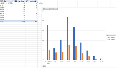 @그룹화하기 ( 나이에 따른 피벗차트)