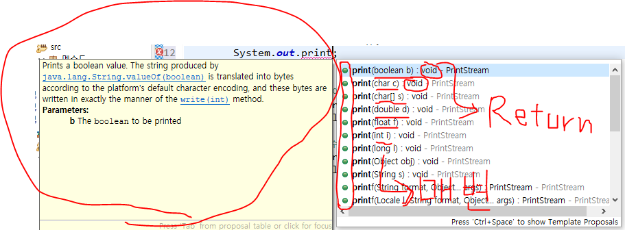 이렇게 볼 수 있다. 이클립스 내에서 ctrl + space 통해 자동완성 기능으로 사용가능 명령어들을 보면