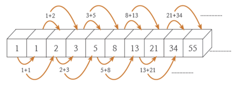- 그외의 경우는 전의 2개의 값을 더해서 새로운 값을 구한다.