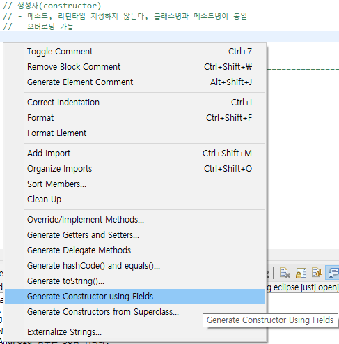 %단축키 - Constructor Generate