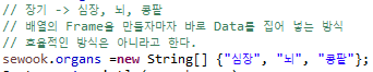 위에서 People이란 Class를 만들고 Organs라는 String 배열을 만들었다. 아래는 이에 Data를 채워 넣는 방법에 관해..