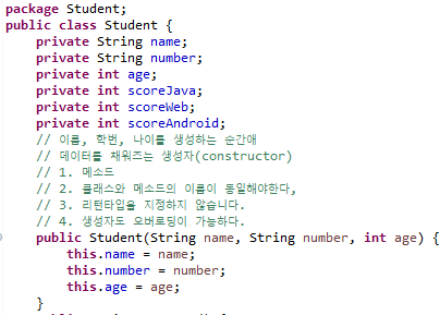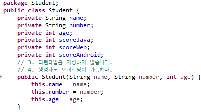 생성자: 메소드명이 클래스명과 동일하고 리턴 자료형이 없는 메소드