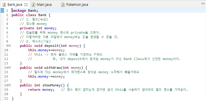 자바에서의 캡슐화 예시