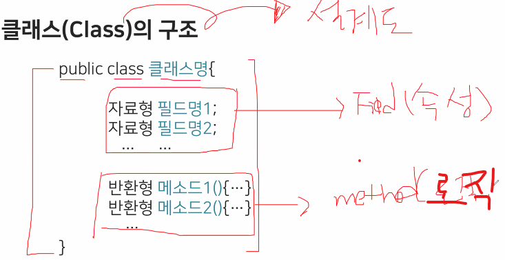뭐.. 갖고있는 장기, 이름, 나이 등등이 Class의 구조 중 Data(Field) 에 해당하며, 밥을 먹거나 운동한다 라고 이름지은 Method들은 Logic 에 해당한다.