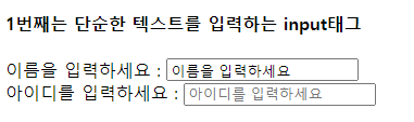 <h4>1번째는 단순한 텍스트를 입력하는 input태그</h4>