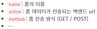 - form Tag의 경우 작성한 내용을 "action"에 넣어준 곳으로 값을 전송한다.