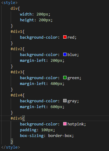 - 위를 보면 핑크색 <div>의 경우 padding Tag로 인해 400X400의 크기를 가져야하지만, box-sizing 으로 인해