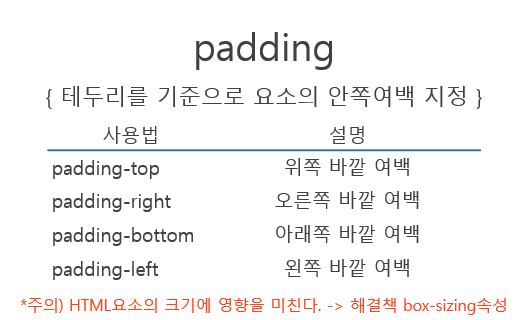 - padding 은 margin 과 반대로 공백을 더 늘려주는 기능을 갖는다.