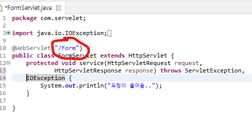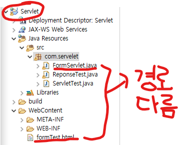 - 때문에, 같은 프로젝트 안에 있지만, 경로가 다른 FormServlet파일을 연결할 수 있는것.