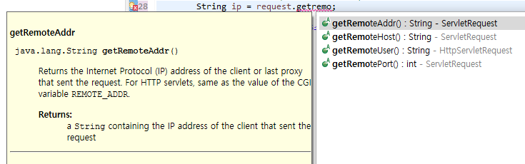 - getRemoteAddr 은 내 IP주소로 들어온 사람의 IP 주소를 가져온다.