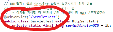 새로 생성한 Servlet 파일의 URL Mapping 값이다.