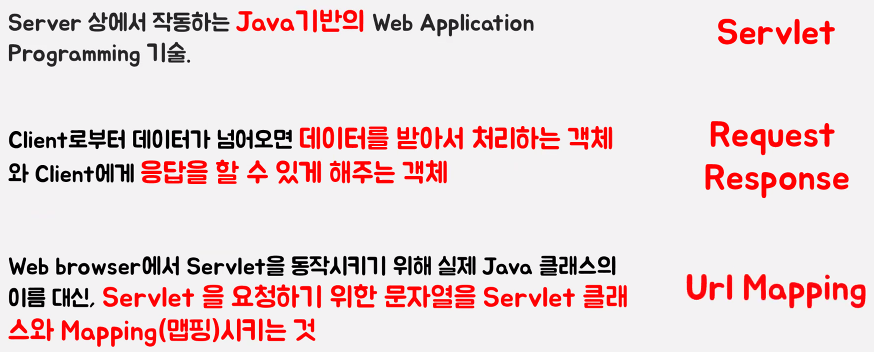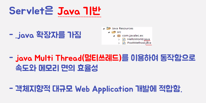 => Servlet은 기본적으로 위와 같은 특징을 갖는다.