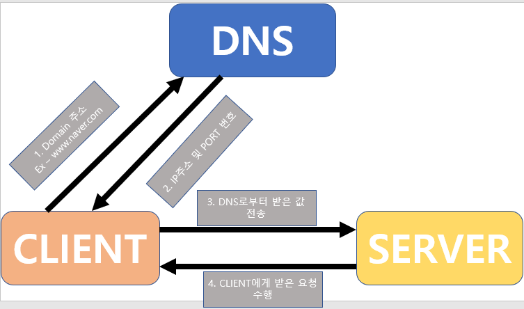 - Domain 주소가 마치 단축키?? 와 같은 역할로 특정 주소를 보내면 DNS가 IP주소와 Port 번호를 뱉는다.