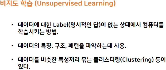 우선 지도 / 비지도 학습에 대한 내용. 결국 키워드는 "명시적 답의 유무".