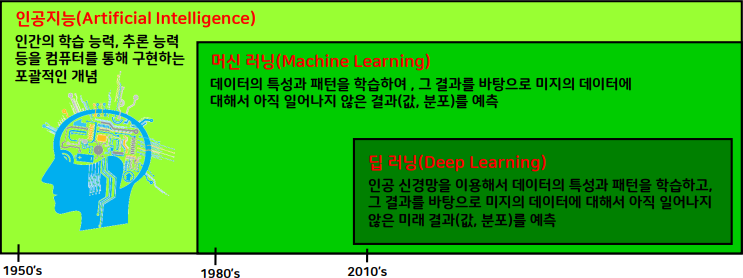 - 인공지능: 그냥 포괄적인 학문학적 개념