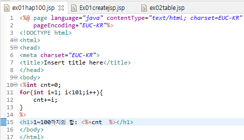 - 한개의 스크립틀릿 만을 사용하였다.