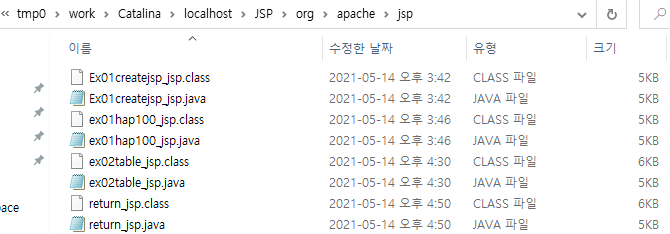위와 같이 각 파일들의 java 및 class 파일이 존재한다. 내가 실습한 "ex02table.java" 파일을 보면
