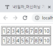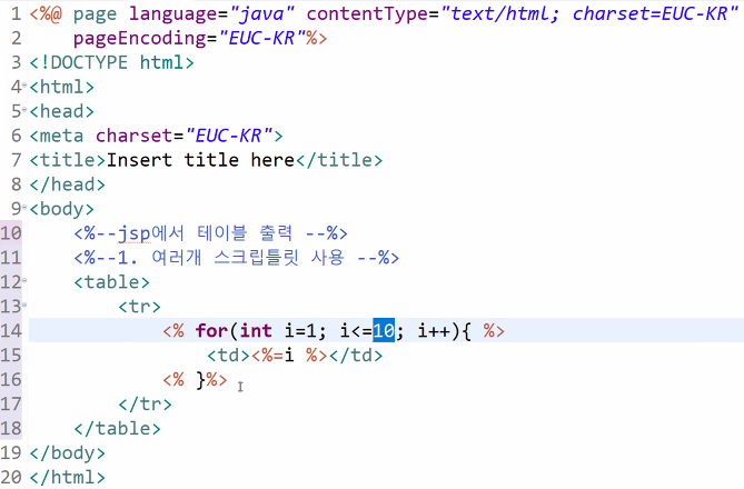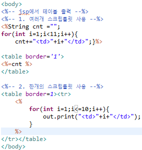 보는것과 같이 표현식에 반복문을 사용하여 String cnt를 사용해 우측 사진과 같이 10개의 <td> 태그를 만들어줬다.