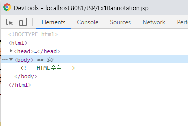 - HTML 주석 : 출력결과에 포함 (Servlet 파일에도 포함)