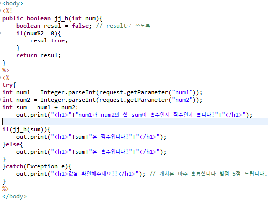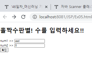 위와 같은 형태의 실습을 진행했다. 아래는 JSP파일 및 HTML 파일의 코드 전문이다.