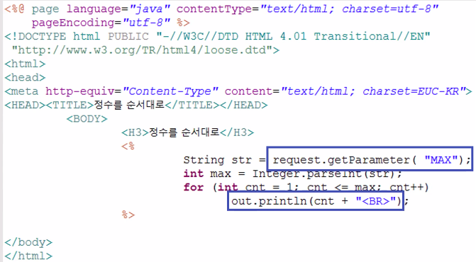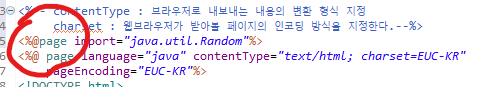 Random 함수와 같이 특정 패키지, 클래스를 쓰고자 하면 import해주는 작업이 필요했다.Page지시자의 경우는 위와 같이 JSP 페이지에서 사용할 Java패키지, 클래스를 호출한다.