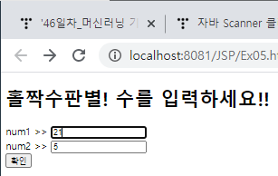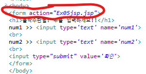 <form> 태그에서 지정해준 주소값인 JSP 파일(좌측 사진)에서 연산하여 표출한다.