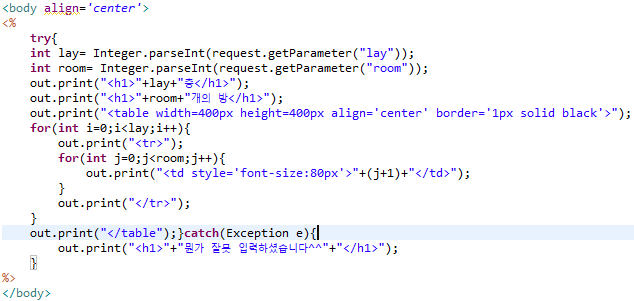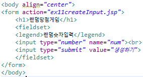 아래는 해당 실습에 대한 HTML 파일 및 JSP 파일의 소스코드이다. ( body 태그부분만 )