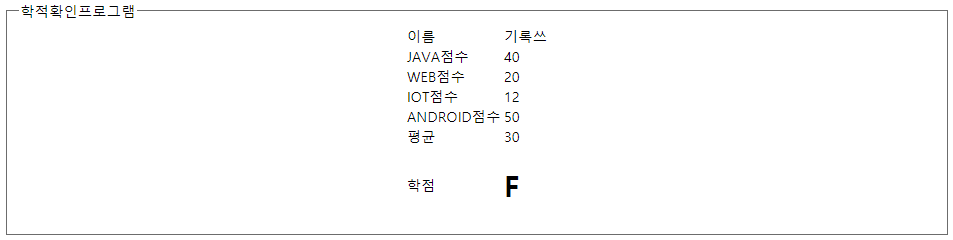 위와 같은 창을 만들어 점수 및 평균을 노출시키는 페이지를 만든다.