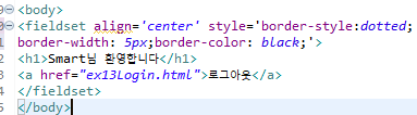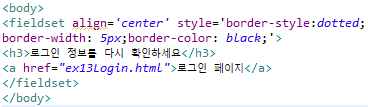 - <fieldset> 태그의 속성에 변화를 주어 점선으로 표기되도록 하였다. ( border-style:dotted )
