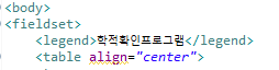 보는것과 같이 <fieldset> 태그를 통해 <table>을 가뒀고, <legend> 태그를 통해 이름을 노출시켰다.