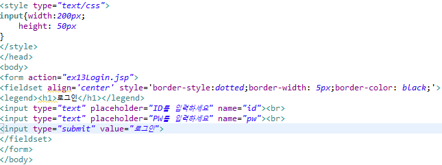 - <style>태그를 통해 <input> 태그의 크기를 변화시켜주었다.