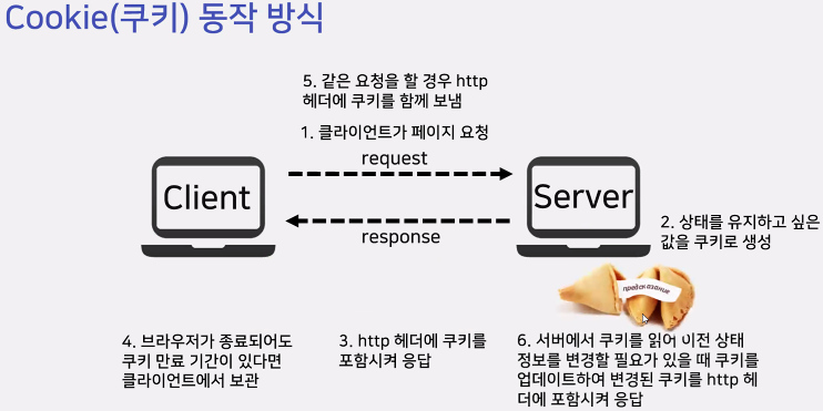 => 브라우저가 종료되기 전까지 클라이언트의 정보를 유지 하게 해주는 기술