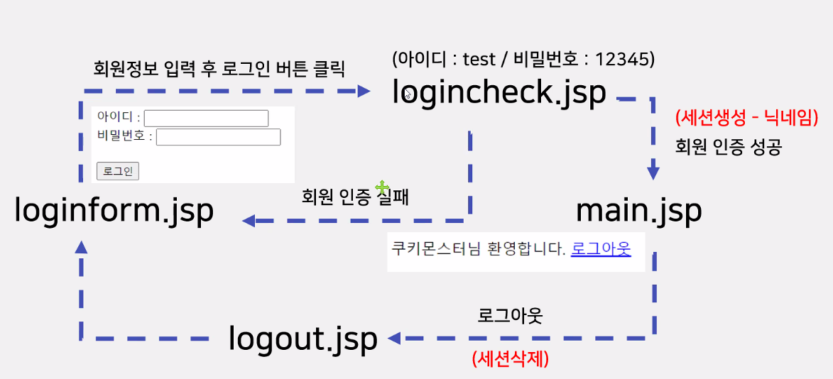 - sendRedirect 를 활용하여 다음 페이지로 이동, 로그인에 실패하면 다시 로그인 페이지 호출.