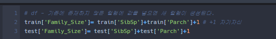 - 새로 만든 열은 가족 구성원 수를 의미하므로 합치는 2개의 열에 자기자신을 포함 +1을 더한다.