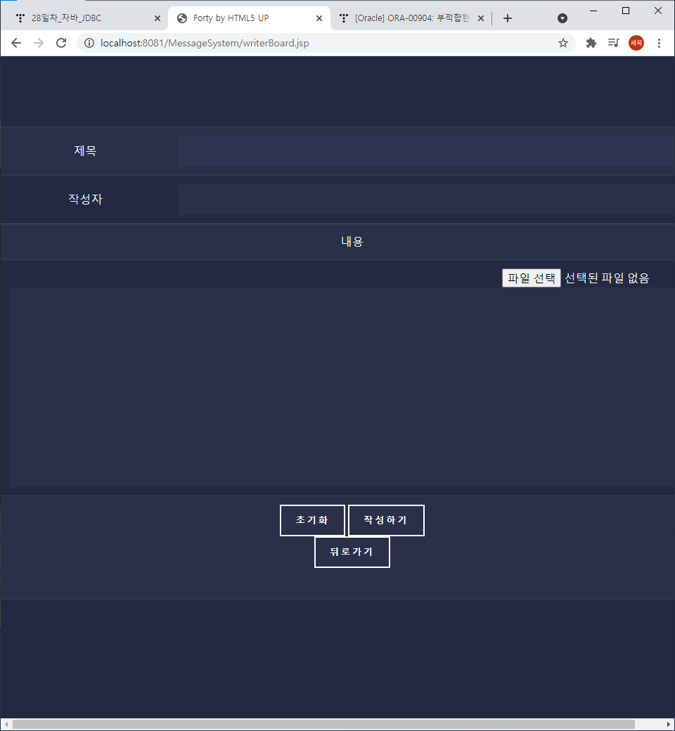 - 페이지는 게시글 목록 페이지 인 "boardMain.jsp" / 상세글 페이지 "viewBoard.jsp" / 작성 페이지 "writerBoard.jsp"로 구성된다.