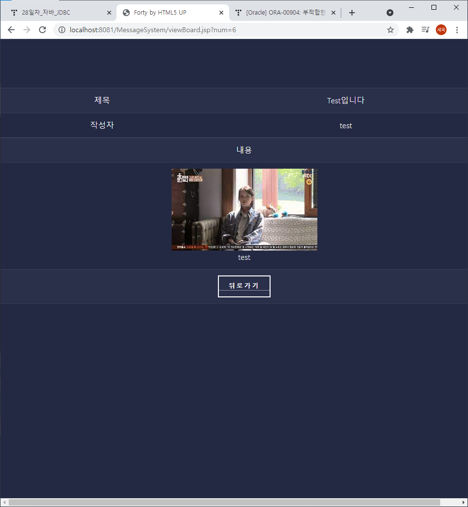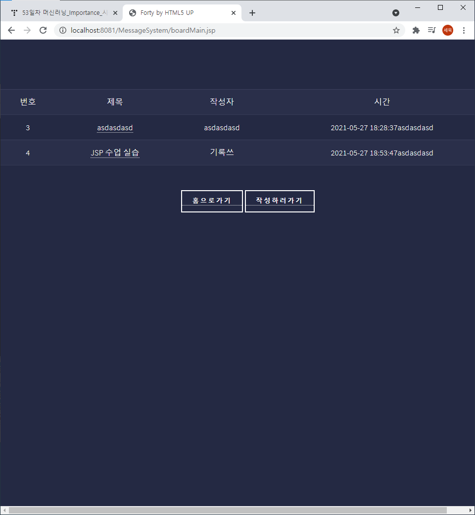 - 첫 Main 페이지에서 "게시판으로 이동"을 누르면 게시판에 올라와있는 글을 볼 수 있다.