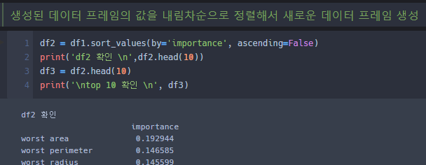- "columns"는 'importance'로 하고 해당 값을 "df1"에 담았다.