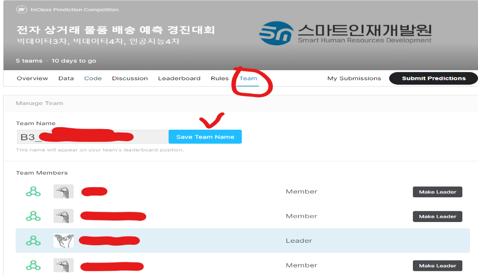 => 내가 수업듣고있는 "스마트인재개발원" 자체적으로 캐글 대회를 진행하였다. 총 3개반 참여.