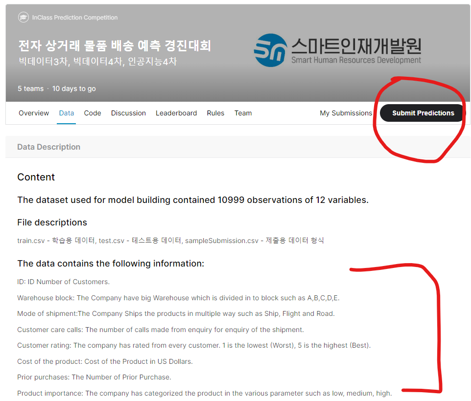 => 빨간색 동그라미 친 부분이 현재는 참여 신청을 해버려서 저래 뜨지만 원래는 "Join Competition"라고있다.