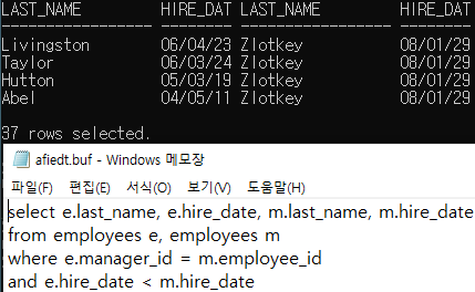 고용일은 당연히 큰 값이 더 늦게 고용된 것. 때문에, 매니저의 고용일이 크다 라고 조건식을 걸어준다.