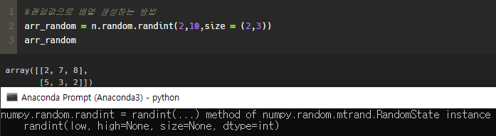 @numpy.random.randint ( 난수 생성 및 배열 생성)