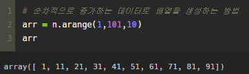 @numpy.arange ( 순차적으로 증가하는 데이터로 배열 만들기)