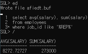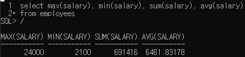 말 그대로 각각 평균과 합계를 구하는 구문이다. 당연하지만 숫자에 대해서만 적용되며 문자인 값(ex - 날짜, 문자)는 사용되지 않는다.